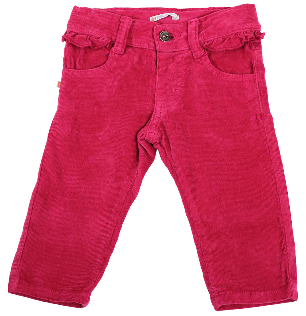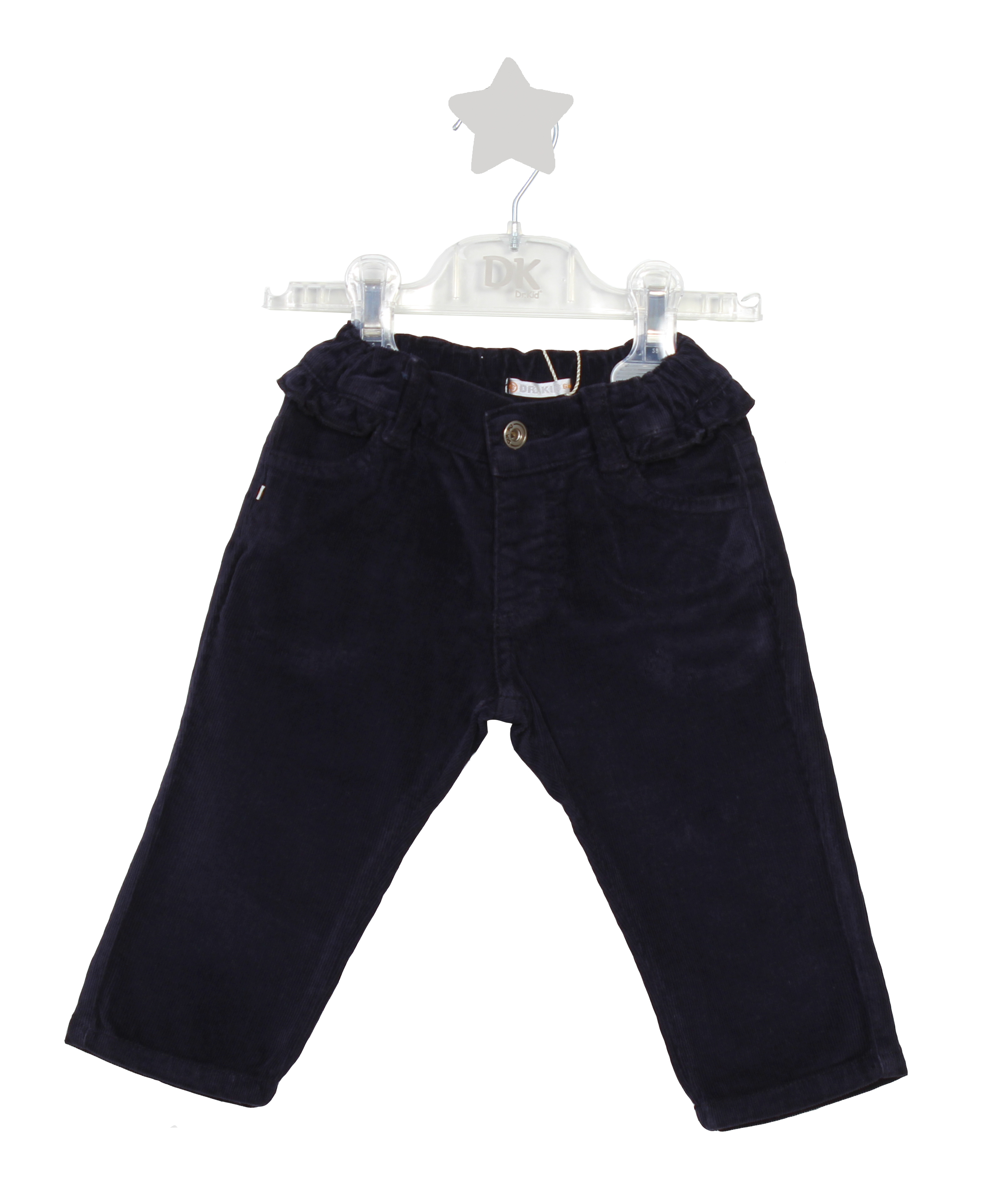 Calças de menina em bombazine, com folho nos bolsos da frente.