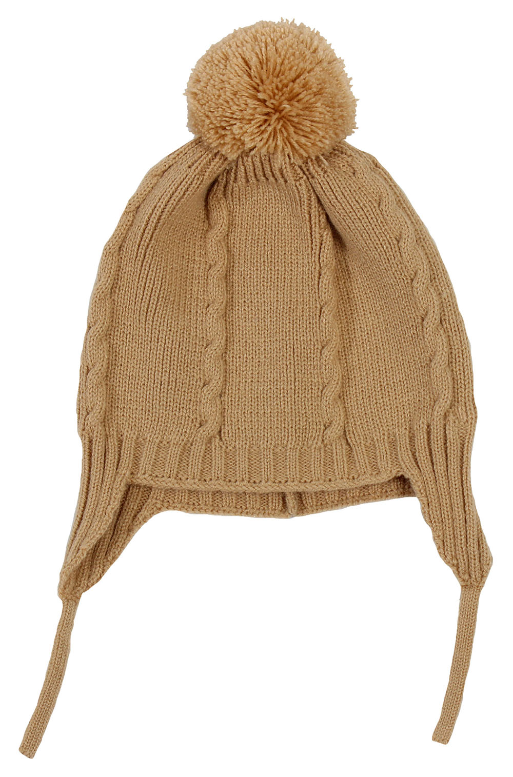 Gorro em malha com pompom e tapa orelhas.